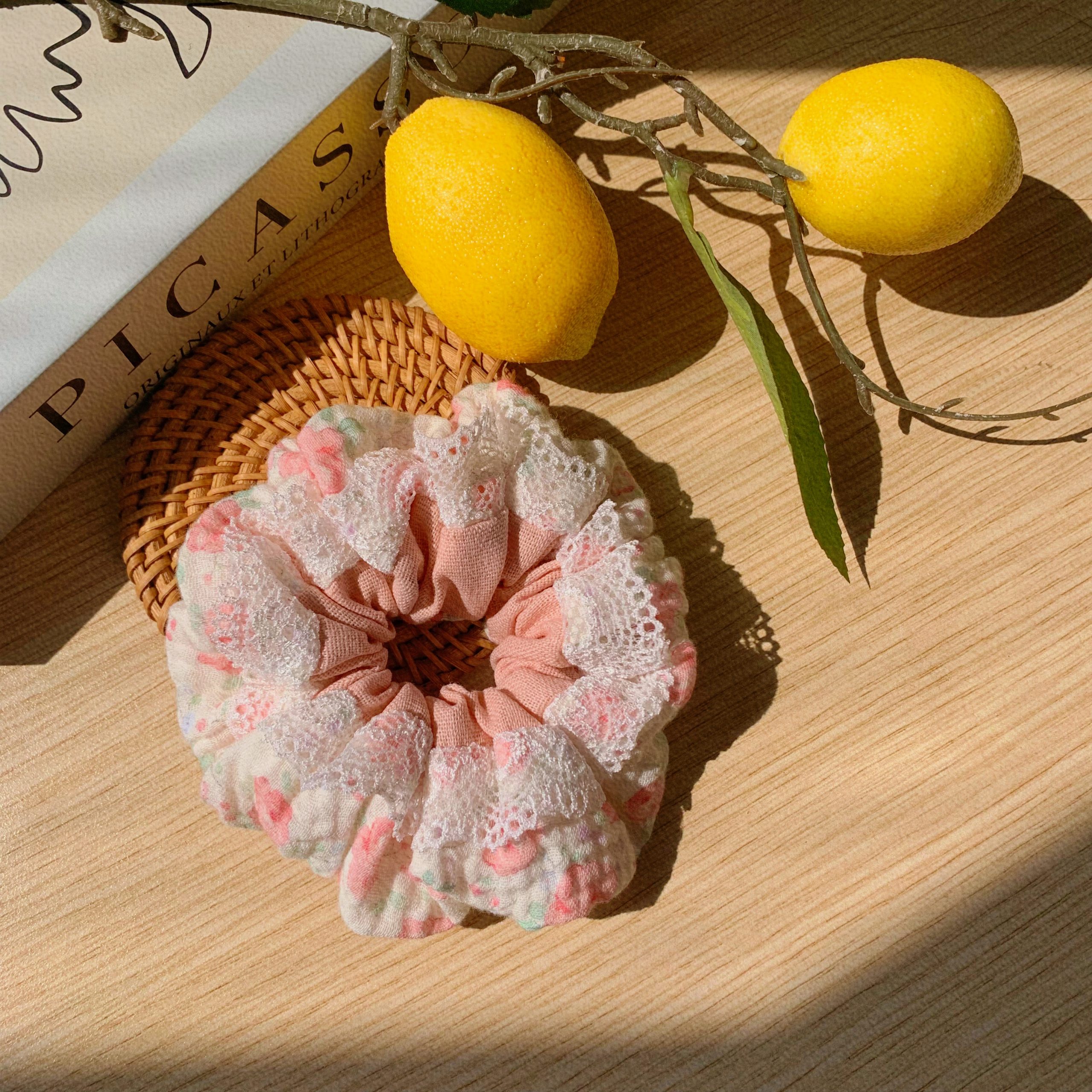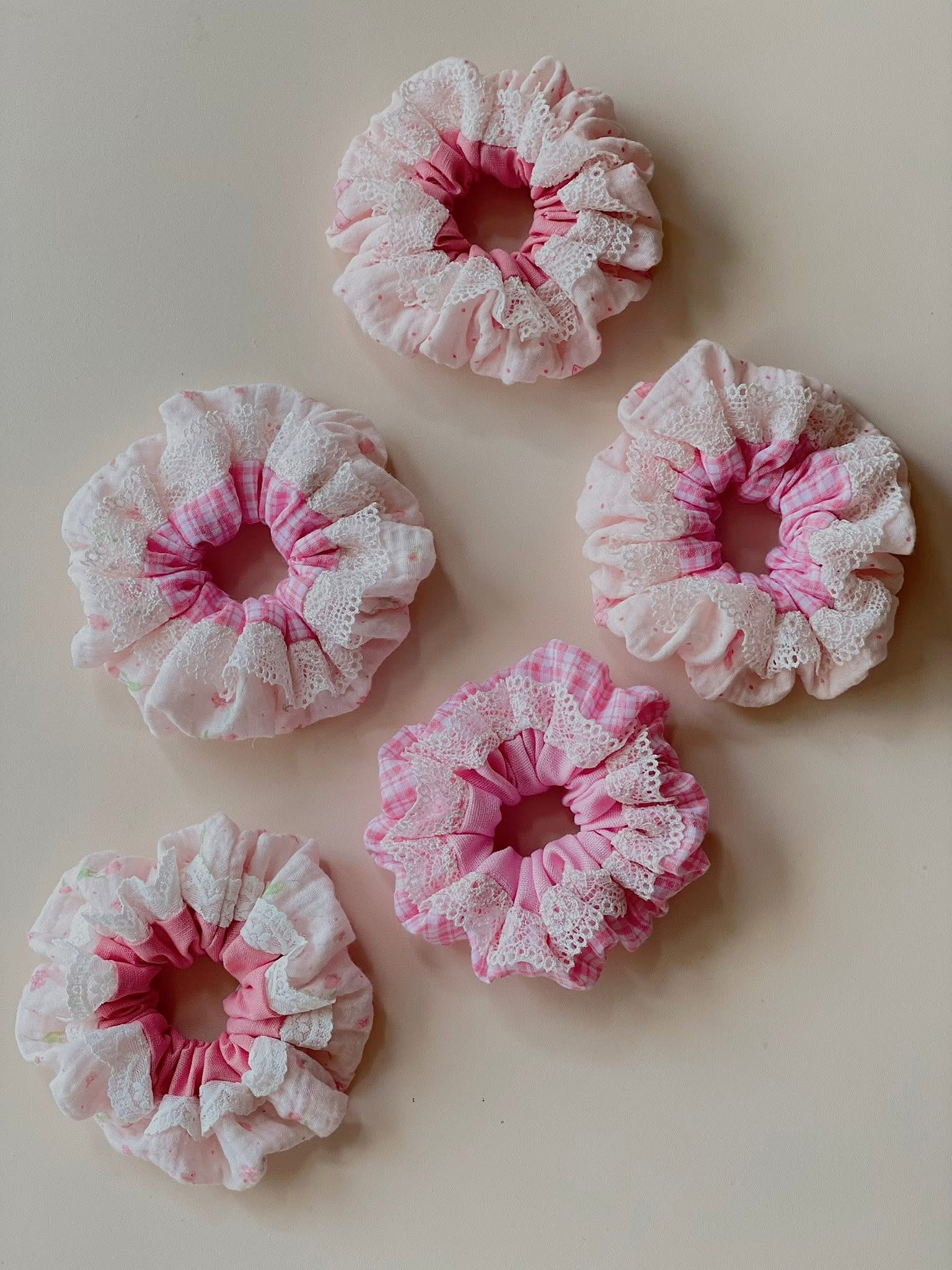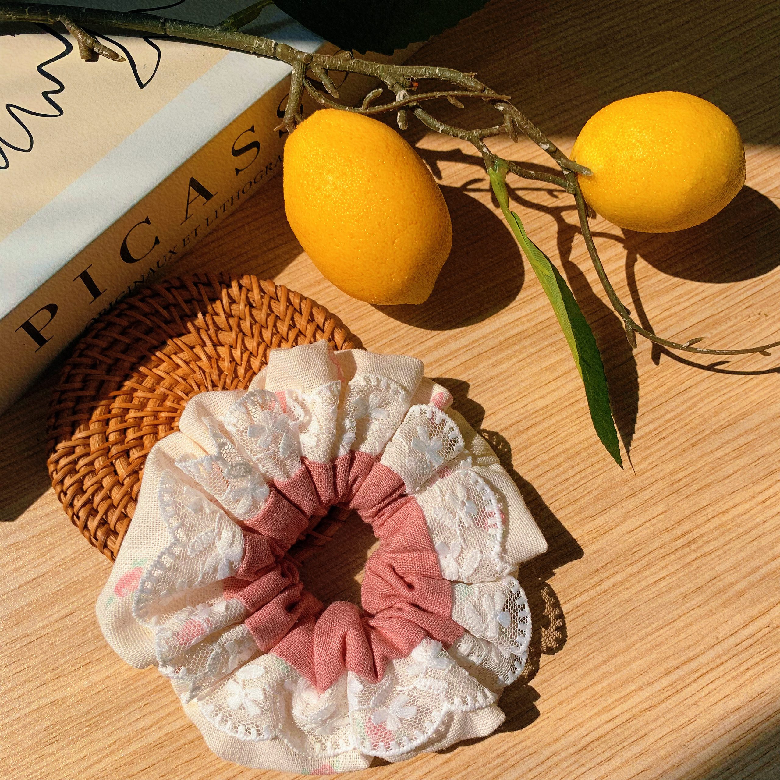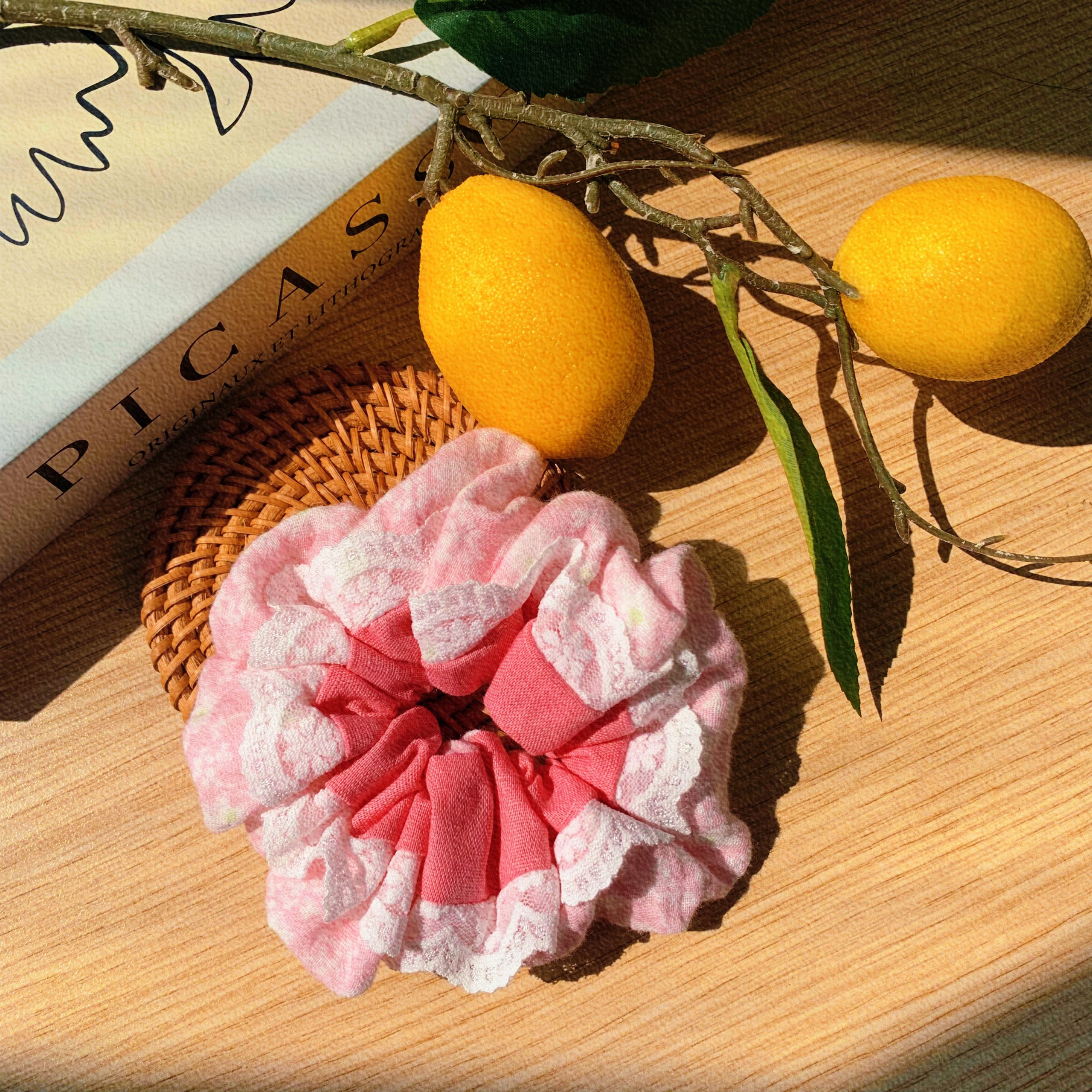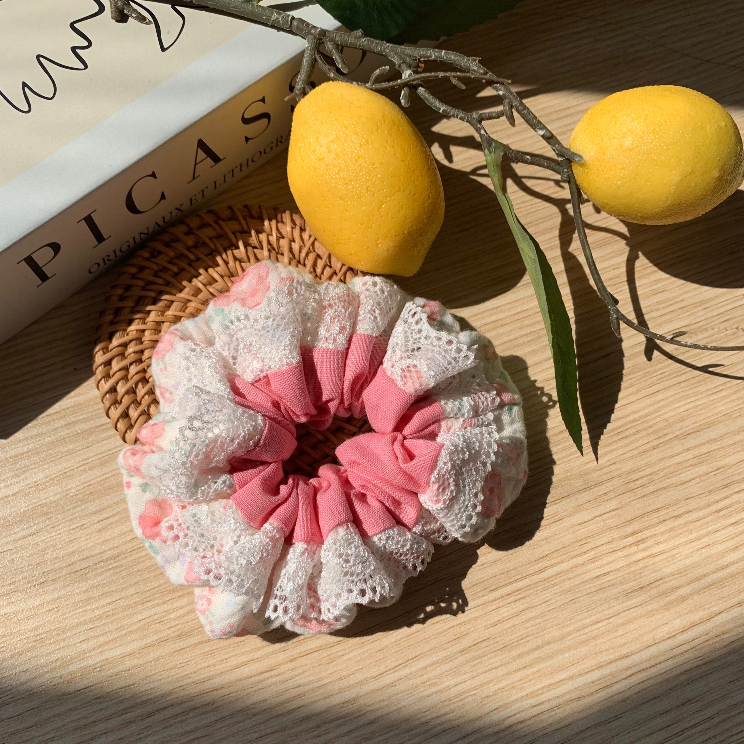 Scrunchies hoa ren ghép phối tone hồng pastel