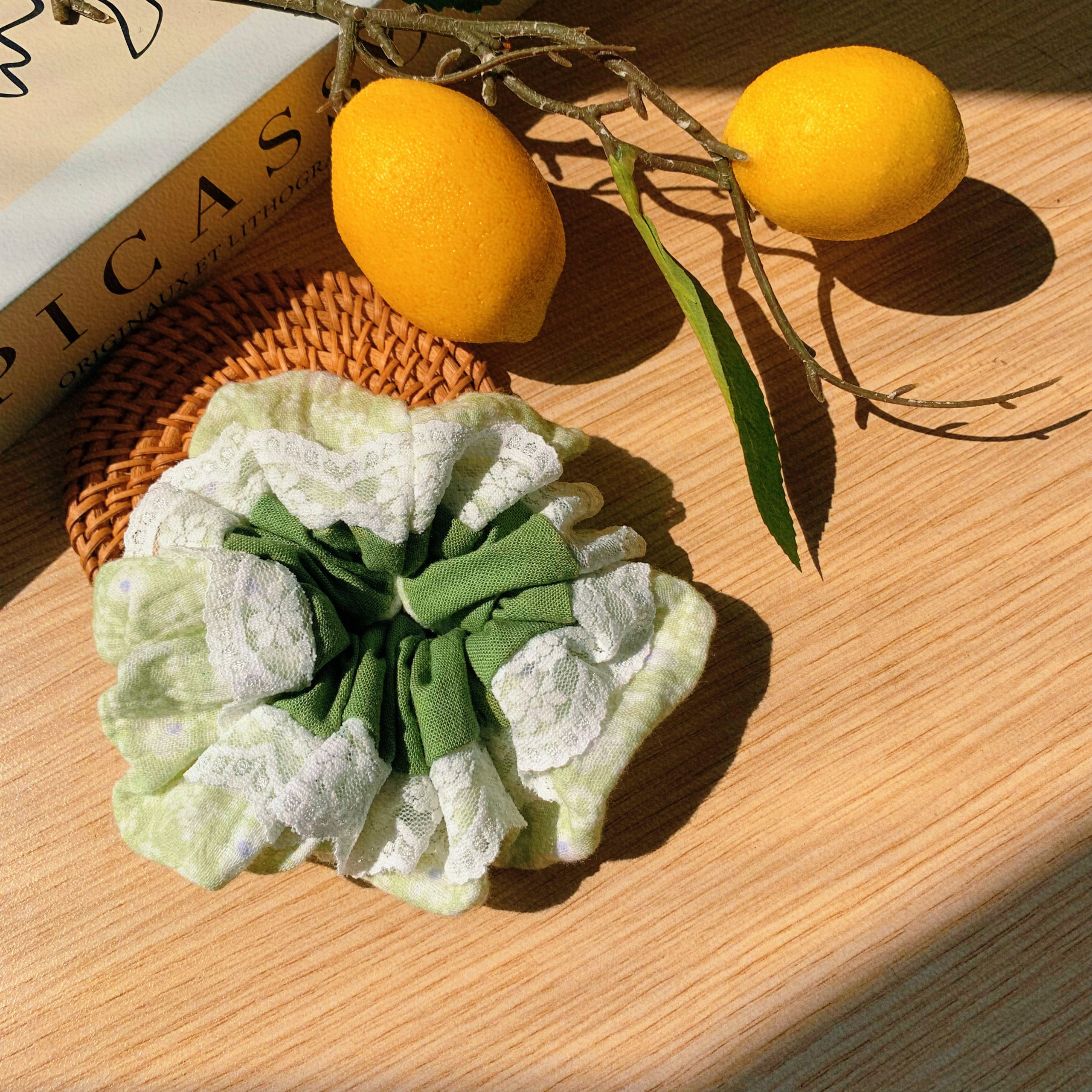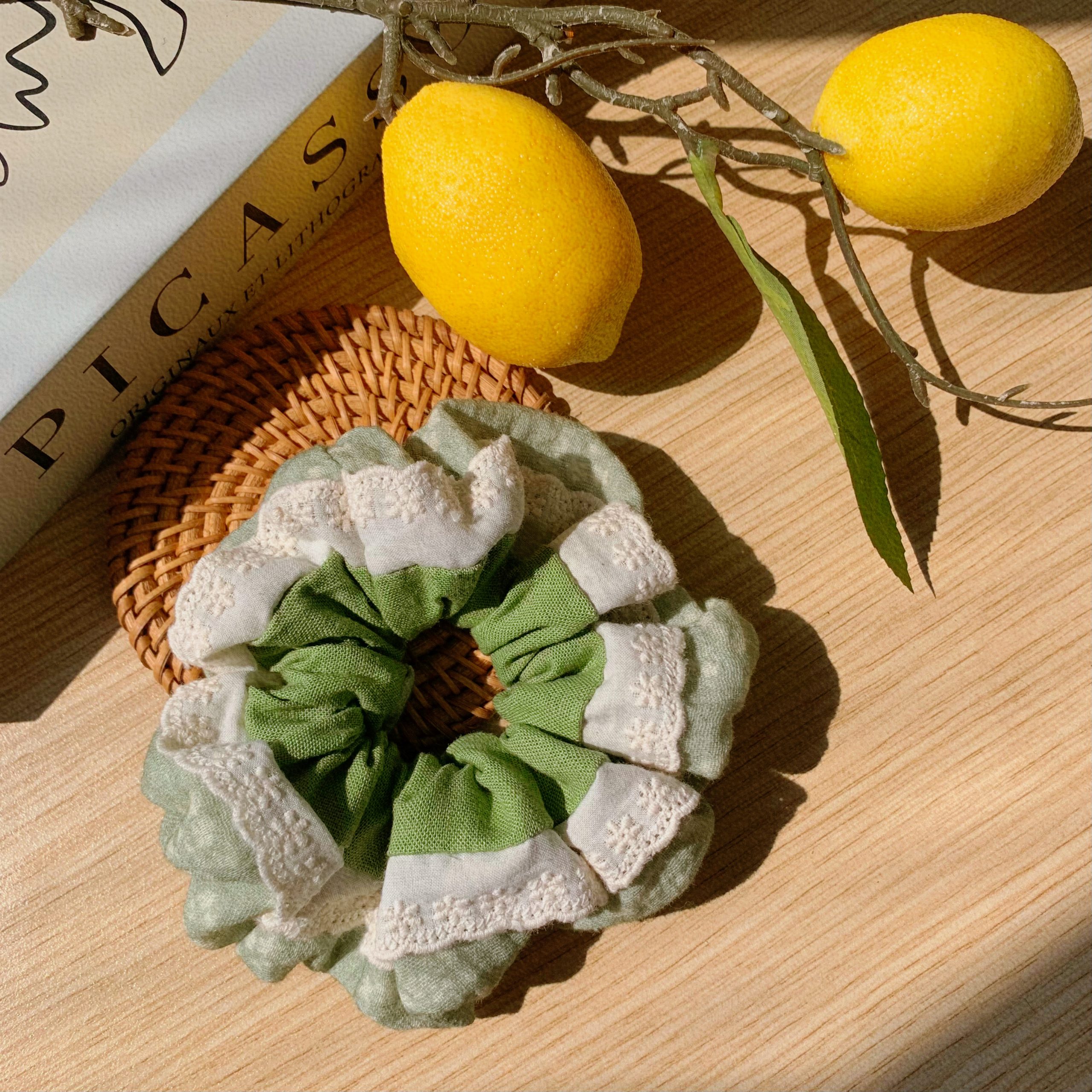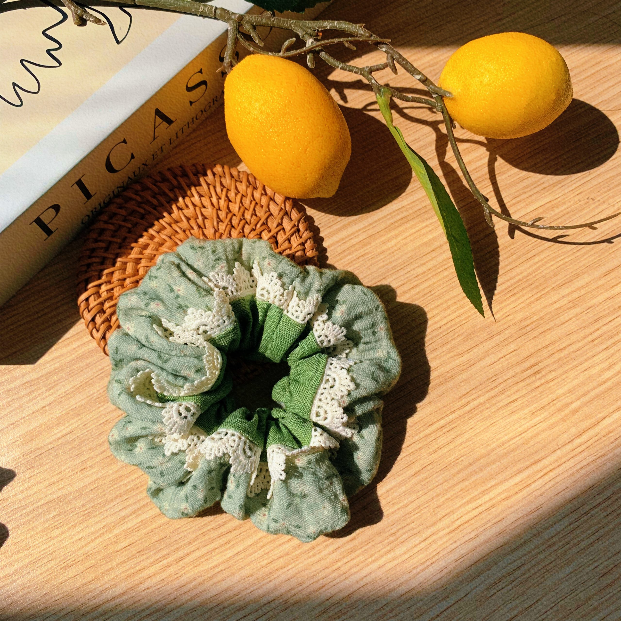 Scrunchies hoa ren ghép phối tone xanh bơ